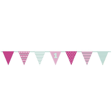 Fantastico Festone per il primo compleanno di tua figlia o della tua bambina. Ideale come addobbo parete, addobbo tavola o addobbo festa.