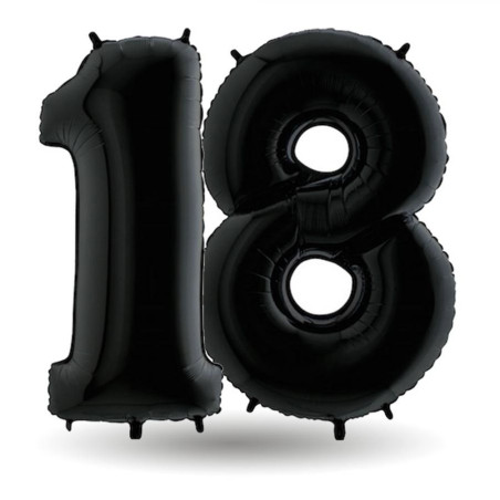 • PALLONCINI N. 18: In NERO. Palloncino in foil mylar XXL 101cm. Per compleanni, feste e anniversari. Adatto a tutti i festeggiati! I palloni sono a numeri separati singolarmente e forniti sgonfi