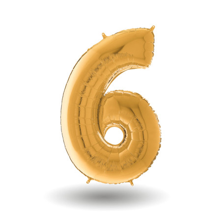 Pallone Compleanno 6 anni - ORO metal LUCIDO 100cm - PALLONCINO numero 6 - NUMERALE in MYLAR foil - con Valvola Auto bloccante - gonfiabile ad ario o ad ELIO per volare - GIGANTE maxi GRANDE