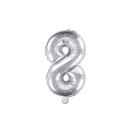Pallone PALLONCINO numero 8 - NUMERALE in MYLAR foil - Colore ARGENTO metal LUCIDO 35   cm - con Valvola Auto bloccante - per compleanni, anniversari, 18 anni, feste, party   ecc.