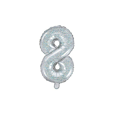 Pallone PALLONCINO numero 8 - NUMERALE in MYLAR foil - Colore ARGENTO OLOGRAFICO 35cm - con Valvola Auto bloccante - per compleanni, anniversari, 18 anni, feste, party