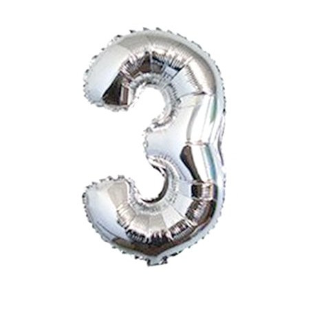 Pallone PALLONCINO numero 3 TRE - NUMERALE in MYLAR foil ARGENTO metal LUCIDO 41 cm - con Valvola Auto bloccante - per compleanni, anniversari, feste, party ecc.
