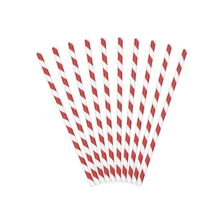 10 cannucce fantasia ROSSO con strisce oblique BIANCO - cannuccia in carta - 19,5cm - decorazione addobbo per feste, party, compleanno ecc.