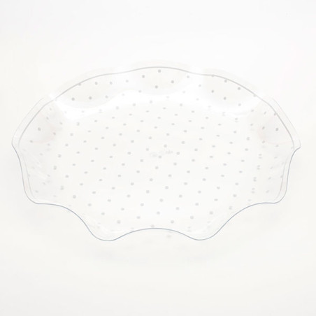 Vassoio Contenitore tonda in PET trasparente con pois BIANCO - Ø32xh4,2cm - Ciotola COPPA in plastica - per dolci, biscotti, caramelle, marshmallow, confetti - Addobbo, decorazione tavola torta buffet