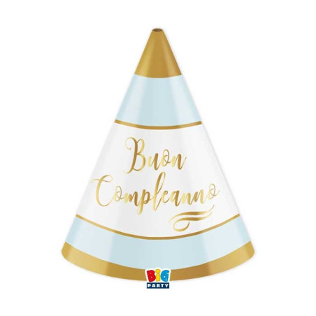 6 cappelli CAPPELLINI Buon Compleanno Chic Celeste - coni in carta per feste BAMBINI e adulti