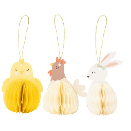 Set 3 decorazioni coniglio pulcino gallina in carta - Decorazione pasquale frufru - 8/9cm