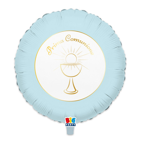 Pallone PRIMA COMUNIONE Celeste e Oro - PALLONCINO 45cm - gonfiabile ad elio - cod:8020834753387