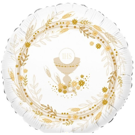 Pallone PRIMA COMUNIONE Bianco e crema calice e spighe - PALLONCINO 45cm - gonfiabile ad elio