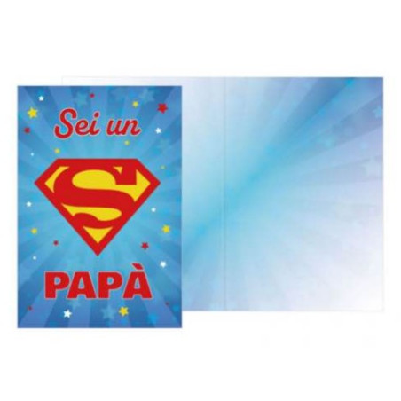 Biglietto augurale per il PAPA' - Con Ciondolo in Legno a forma di "S" superman - PRODOTTO IN ITALIA - biglietto di auguri completo di busta - ideale per accompagnare il regalo