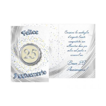 • Testo interno: "Carissimi la medaglia d'argento l'avete conquistata, ora allenatevi bene per salire sul podio a ricevere l'oro. Buon 25 Anniversario!"