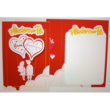 Biglietto di Auguri per Anniversario - Nozze - Con Ciondolo a forma di cuori in  Legno - biglietto augurale completo di busta - MADE IN ITALY