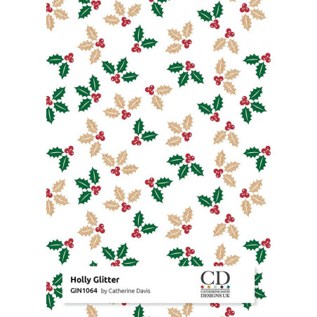 Rotolo carta da REGALO Instawrap Lick & stick "Holly Glitter" - AUTOADESIVA- ideale per confezionare regali di natale, capodanno o per l'epifania