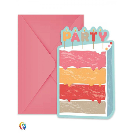 6 inviti FESTA di COMPLEANNO Party torta cake Multicolor - Con Busta - cod:5201184893494