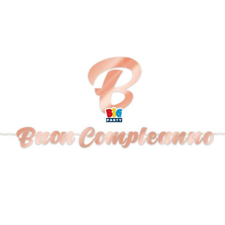 FESTONE MAXI in carta scritta BUON COMPLEANNO - Colore ROSA GOLD Metal lucido - 600x25cm - Letter Banner ghirlanda decorazione - per decorazione addobbo feste, party