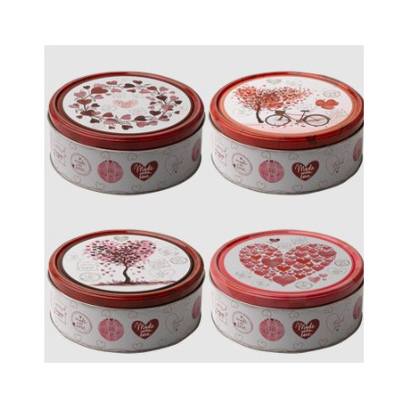 Scatola Latta con stampe cuori con 150 gr biscotti al burro