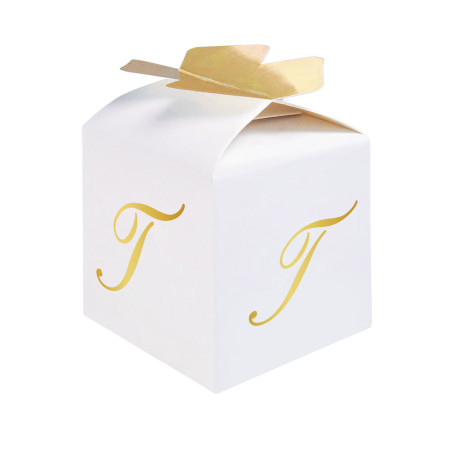 10 Scatoline in carta portaconfetti - con lettera T iniziale in ORO - 5x7x5cm