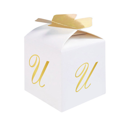 10 Scatoline in carta portaconfetti - con lettera U iniziale in ORO - 5x7x5cm
