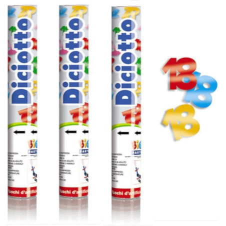3X Cannone SPARACORIANDOLI 18 ANNI METAL - Tubo lancia coriandoli 30cm