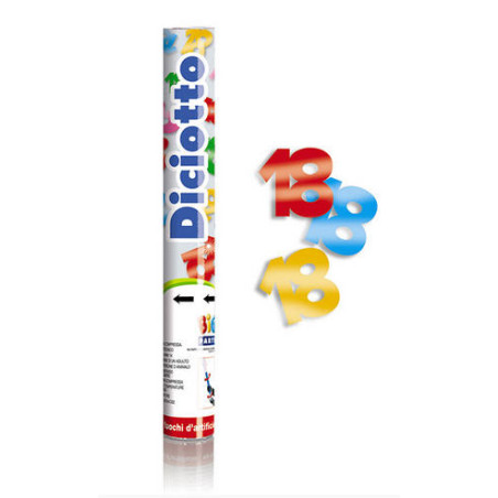 Cannone Tubo Sparacoriandoli CORIANDOLI con coriandoli a forma di numero 18 - Multicolor Metal - TUBO da 30cm - - ideale per diciottesimo compleanno, anniversario, promessa, matrimonio, matrimonio civile, laurea, feste o party
