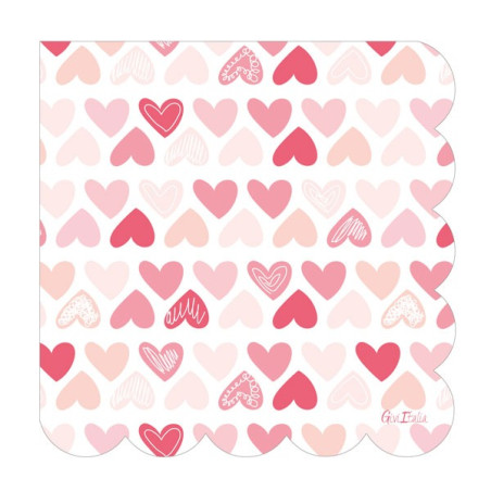 16 Tovaglioli in carta SMERLATO con stampa cuori rosa rosso 33X33 cm 3 veli