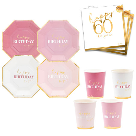 Colora la tavola della festa di compleanno.Coordinato completo per la tavola di 60 Anni. Il kit perfetto per festeggiare in allegria e compagnia addobbando la tavola in maniera colorata e divertente.