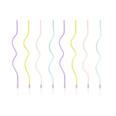 8 Candele CURLY - spirale RICCIA MULTICOLOR candeline in cera per torte H14 cm