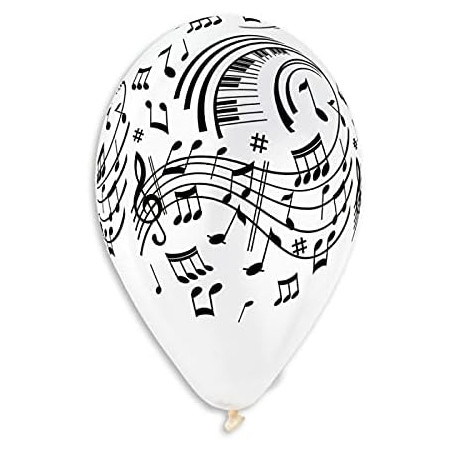 set 10 pallone PALLONCINI in LATTICE stampa Note Musicali, pentagramma, chiave di violino ecc. - colore Bianco con stampa Nera - ideali per addobbi decorazioni feste, party, compleanno ecc.