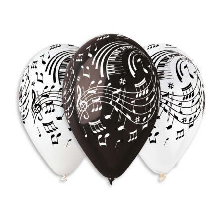 set 10 pallone PALLONCINI in LATTICE stampa Note Musicali, pentagramma, chiave di violino ecc. - colore Bianco e Nero - ideali per addobbi decorazioni feste, party, compleanno ecc.
