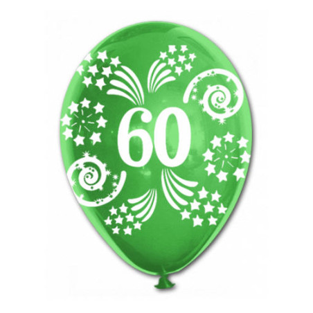 10 Pallone PALLONCINI in LATTICE stampa numero 60 colori assortiti - per decorazione addobbo feste, party, 60 anni, anniversari ecc. - cod:8032748320241