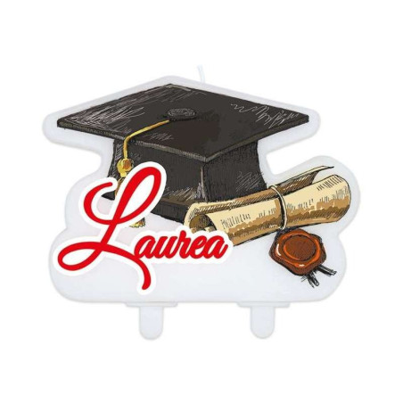 • Candela piatta con tocco nero laurea con pergamena e scritta Laurea colore rosso