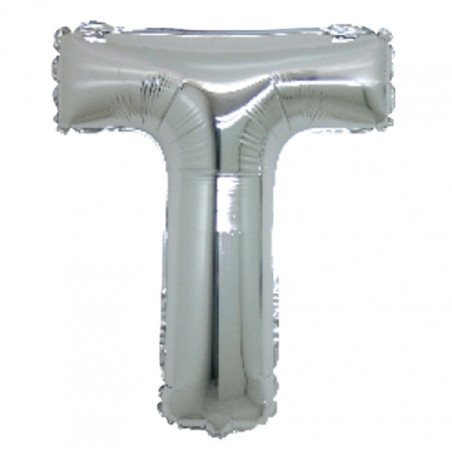 PALLONCINO Pallone LETTERA T ARGENTO in MYLAR foil 21cm