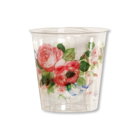 10 Bicchieri CACHEPOT con rose in plastica Kristal - addobbo decoro tavola - cod:8018100032205