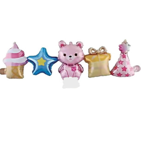 Pallone PALLONCINO in foil MYLAR ghirlanda ORSETTO rosa 101X32cm