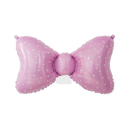 • Pallone forma di fiocco rosa con stampa cuoricini bianchi