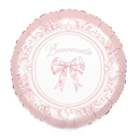 Pallone BENVENUTA ROSA - Nascita Bimba - stampa fiocco vintage - 45cm