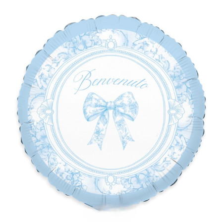 Pallone BENVENUTO CELESTE - Nascita Bimbo - stampa fiocco vintage - 45cm