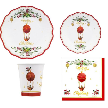 Colora la tavola della festa con tema oro, rosso e bianco. Coordinato completo per la tavola. Il kit perfetto per festeggiare in allegria e compagnia addobbando la tavola in maniera colorata e divertente il tuo Natale, Capodanno
