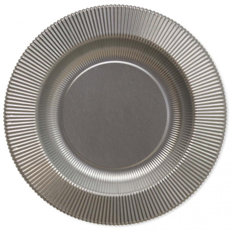 8 PIATTI fondi Ø25,5cm in carta ARGENTO - addobbo decoro tavola natalizia - cod:8018100042358