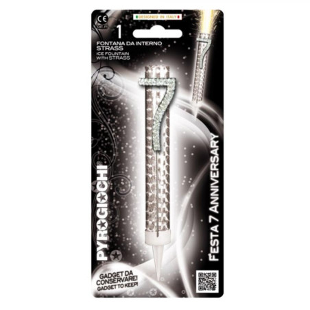 Candela Fiaccola Numero 7 Argento Glitter Fontana da interno Magic Flambè