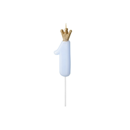 CANDELA numero 1 CELESTE con corona ORO - candelina primo compleanno per torta - cod:5900779171688
