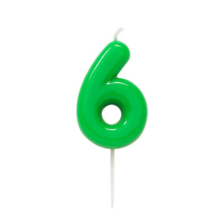 CANDELA numero 6 glossy VERDE per torta - candelina numerale per torte e dolci