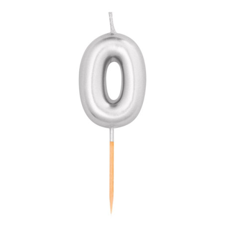Candela numero 0 Zero Argento Lucido - numerale h 4,5 cm - Candelina per Torta e dolci   - candela di compleanno in cera a forma di numero