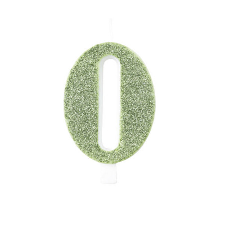 Candela 0 Zero - colore VERDE SALVIA glitterato - Bio GLITTER - numerale h9,5cm - Candelina per Torta e dolci - candela di compleanno in cera a forma di numero