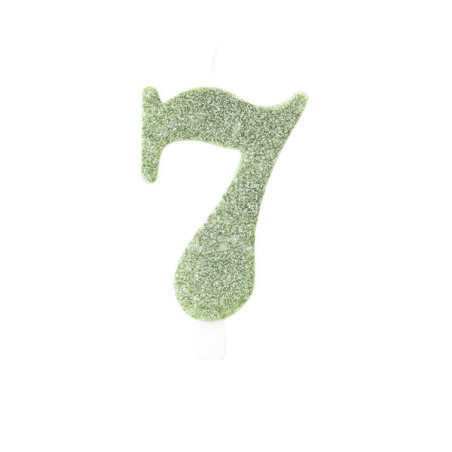 Candela 7 Sette - colore VERDE SALVIA glitterato - Bio GLITTER - numerale h9,5cm - Candelina per Torta e dolci - candela di compleanno in cera a forma di numero