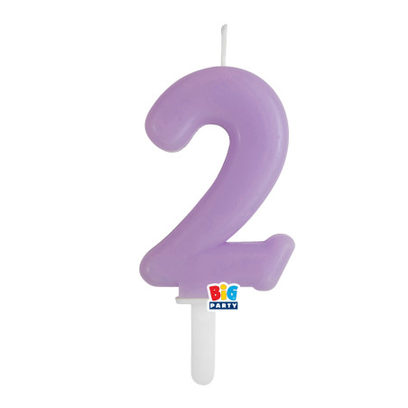 Candela numero 2 DUE - colore LILLA - Tiny Plump - numerale h7cm - Candelina per Torta e dolci - candela di compleanno in cera a forma di numero