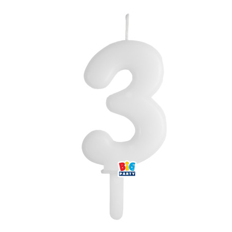 CANDELA numero 3 Tre BIANCO - Tiny Plump - candelina in cera per torta