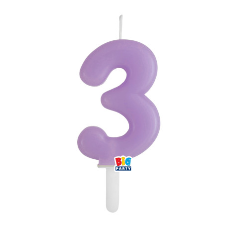 Candela numero 3 TRE - colore LILLA - Tiny Plump - numerale h7cm - Candelina per Torta e dolci - candela di compleanno in cera a forma di numero