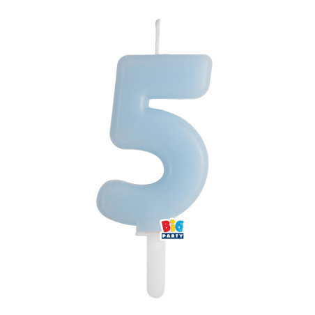 CANDELA numero 5 Cinque CELESTE BABY - Tiny Plump - candelina in cera per torta