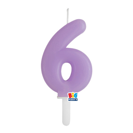 Candela numero 6 SEI - colore LILLA - Tiny Plump - numerale h7cm - Candelina per Torta e dolci - candela di compleanno in cera a forma di numero