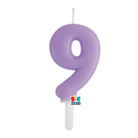 Candela numero 9 NOVE - colore LILLA - Tiny Plump - numerale h7cm - Candelina per Torta e dolci - candela di compleanno in cera a forma di numero